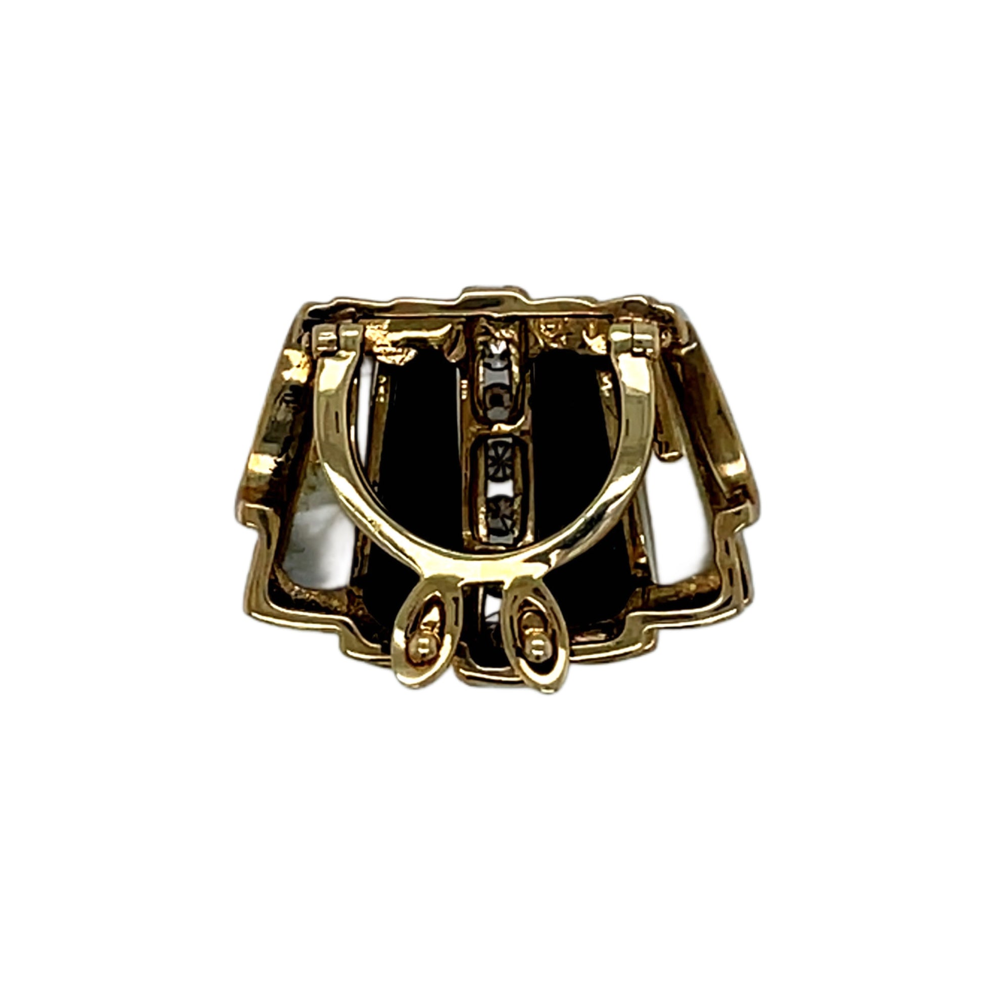 Onyx & Mother of Pearl Inlay Slide with Diamonds 14 Karat Yellow Gold, Hinged Clasp