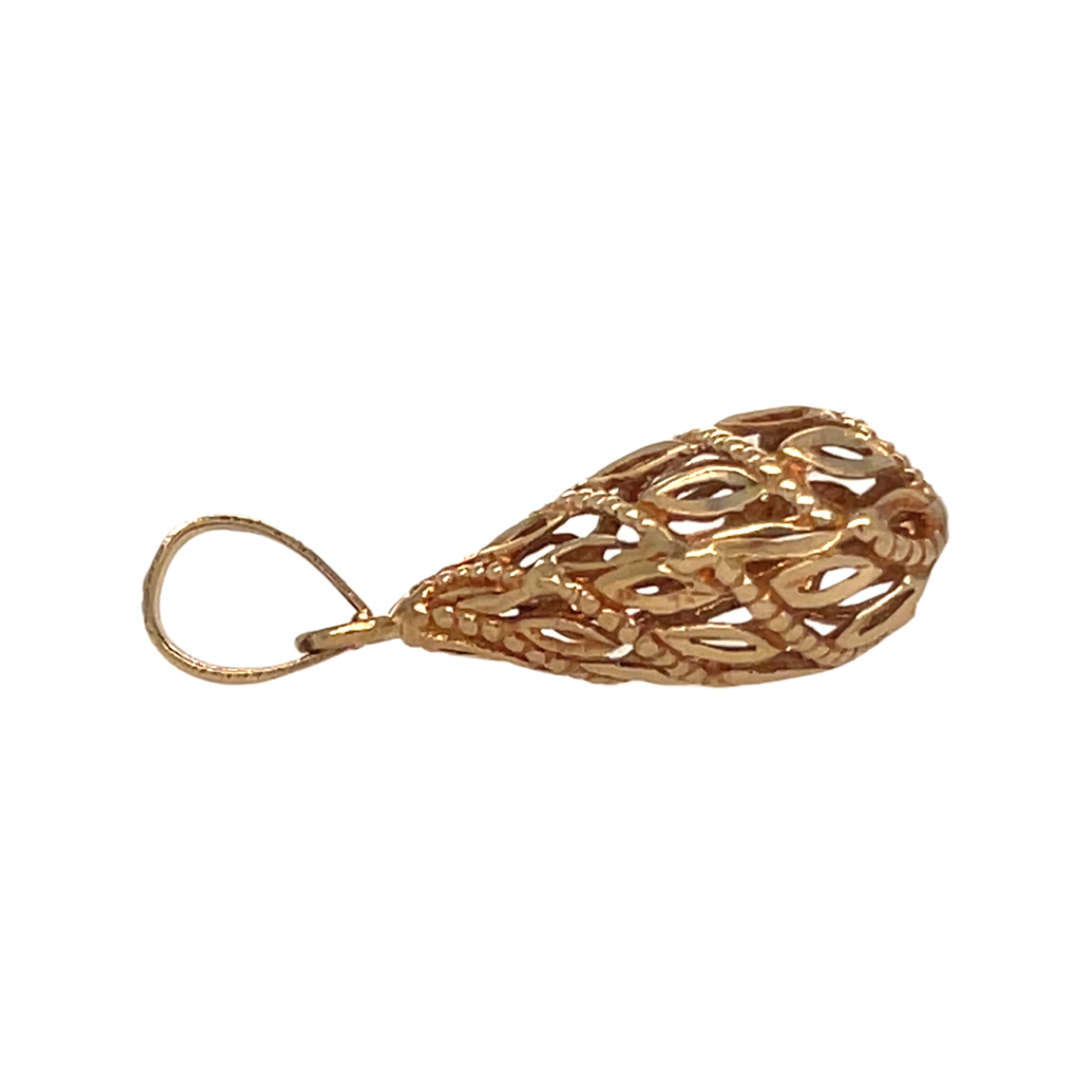 Teardrop Diamond Cut Filagree Pendant 3/4" Long 10 Karat Gold